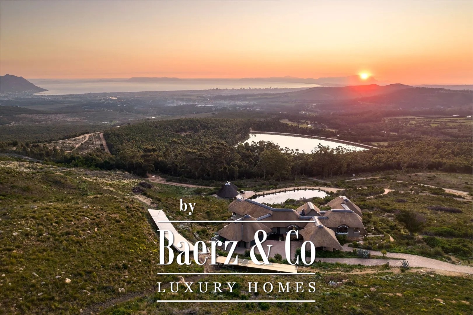 The separately situated guesthouse, located lower within the surrounding fynbos, with its own parking area and natural dam/pond, is accessible via a separate driveway.