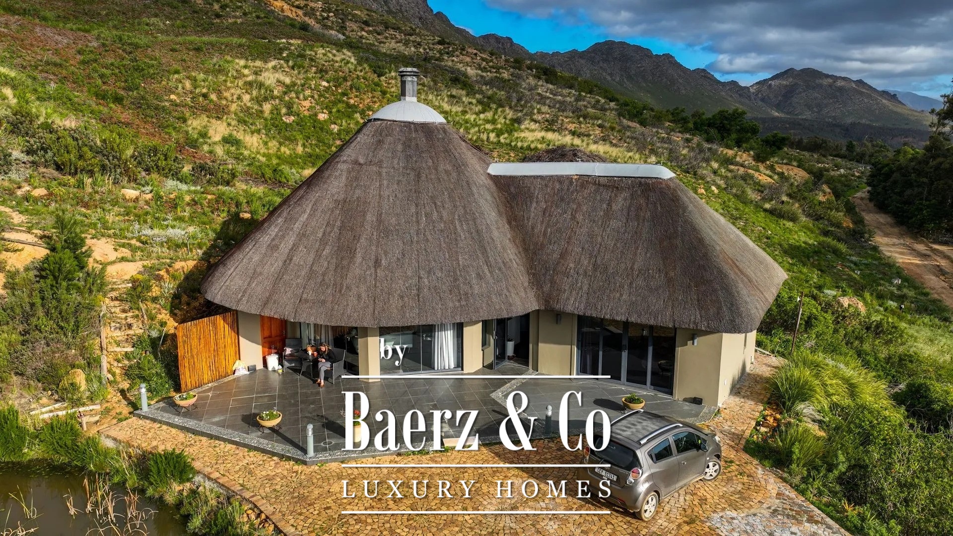 In 2006 the manor house and outbuilding were traditionally built with natural materials in the unique South African rondavel style. The structure consists of cavity brickwork walls with plastering, concrete floors, and an open wooden roof construction, nostalgically thatched with reed. The property is fitted with insulated glass in low-maintenance aluminium frames with sliding doors.