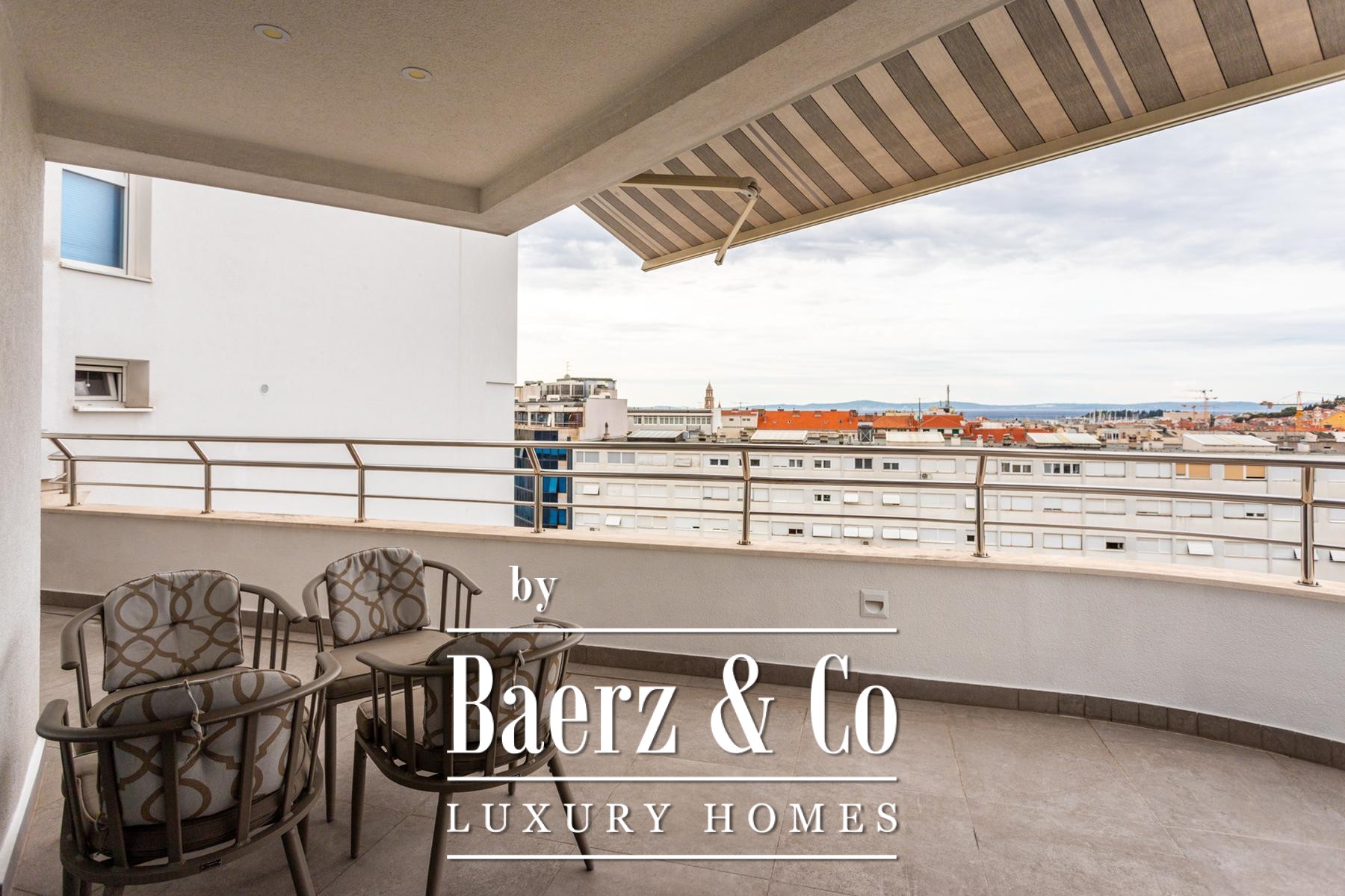 Apartment Split anchors a rare vantage in the heart of the city, situated on Ljudevita Posavskog Street. This west-facing residence occupies the sixth floor, the penultimate level of a building with elevator access, and encompasses 124.56 m² of living space.