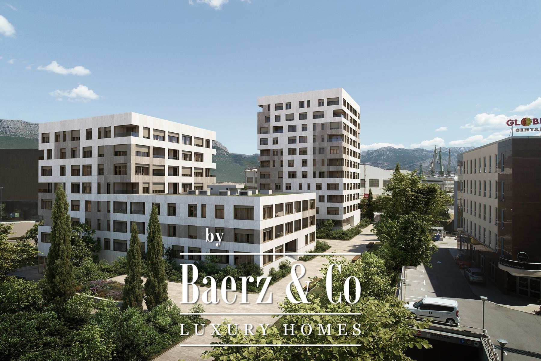 Building amenities serve a discerning lifestyle: dedicated 24-hour concierge and security, a private gym, a secure package room, and an underground garage with surveillance. Landscaped green parks and walking paths create a gentle rhythm to daily life. The property is moments from Marjan Forest Park, the sea, and Lučica Beach, with efficient connections to the city center and business district. The setting offers discretion and access, with schools, shops, and restaurants bringing convenience within reach.