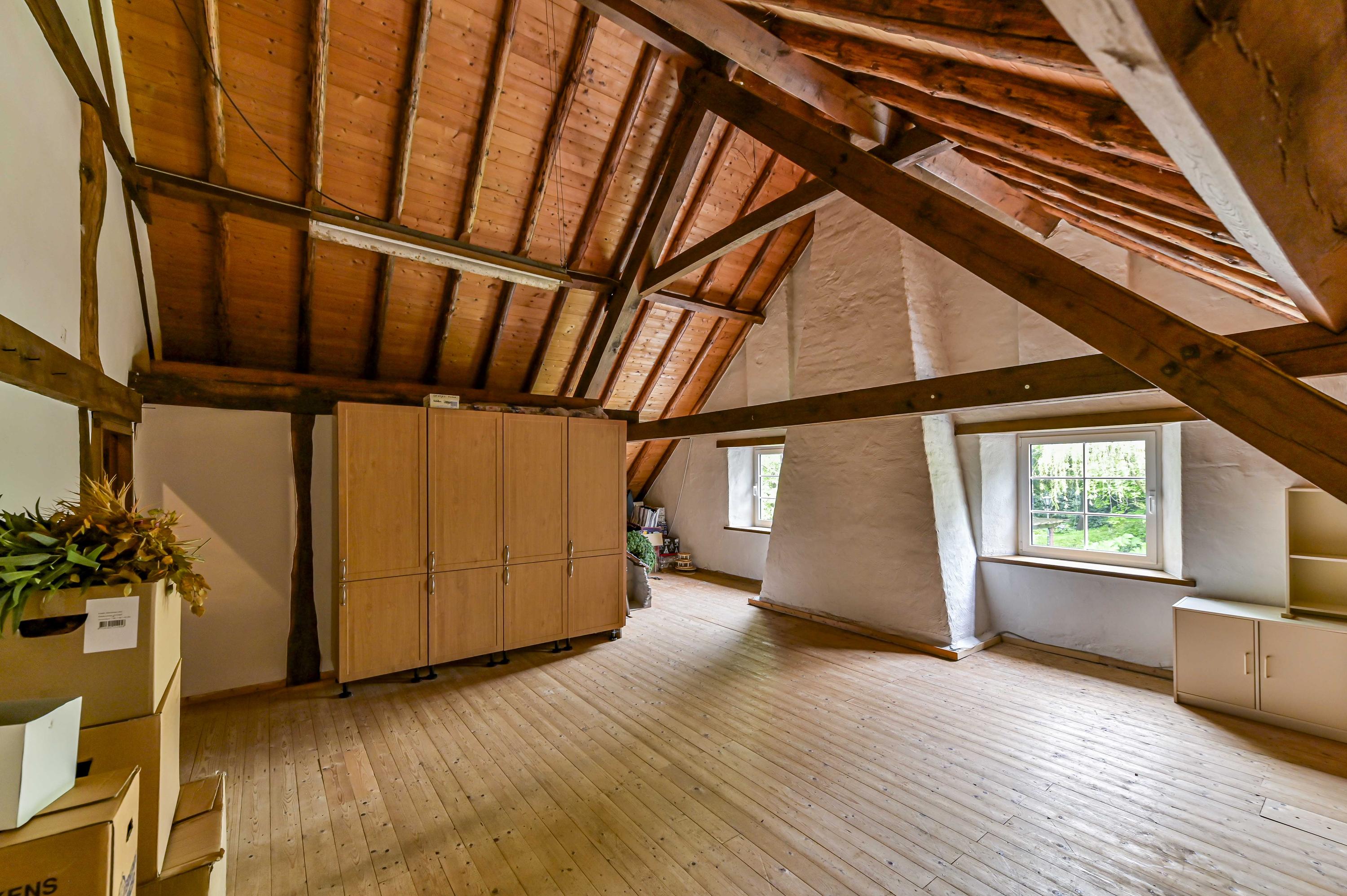 The play loft offers a mezzanine with fixed staircase and passage to an additional attic. From here, doors lead to: