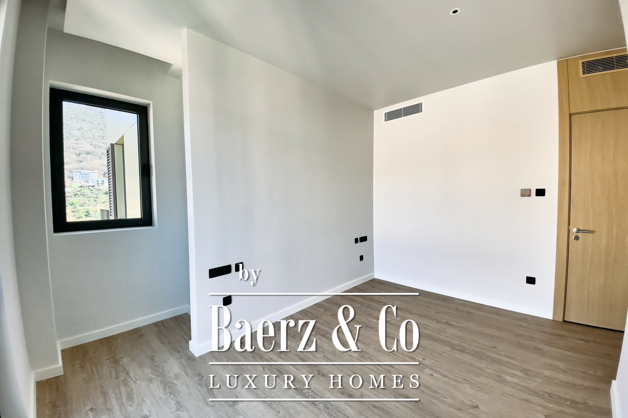 Structure of the apartment: hallway, living room with kitchen and dining table, 2 bedrooms, 2 bathrooms and 2 terraces. The apartment itself has 80,26m2, while its 2 terraces have 21,61m2. It has a sea view and the view of the mountains that surround it. The apartment is finished and unfurnished: floors and tiles are finished, kitchen and bathrooms are equipped, air conditioning is equipped.