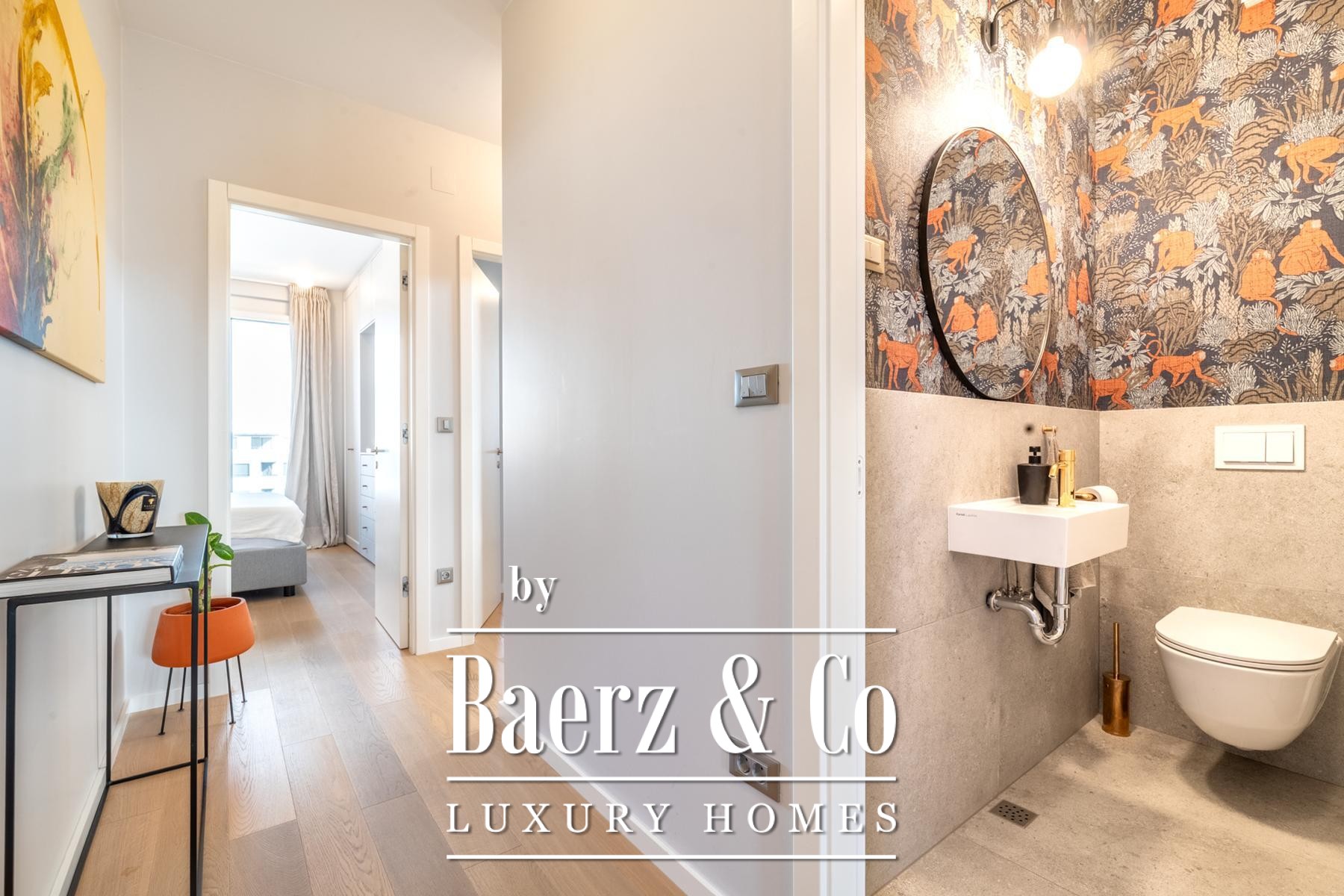 The bathrooms are decorated in a minimalist style with ceramics and fixtures in golden tones, while lighting, textures, and details create the atmosphere of an exclusive urban home.Location