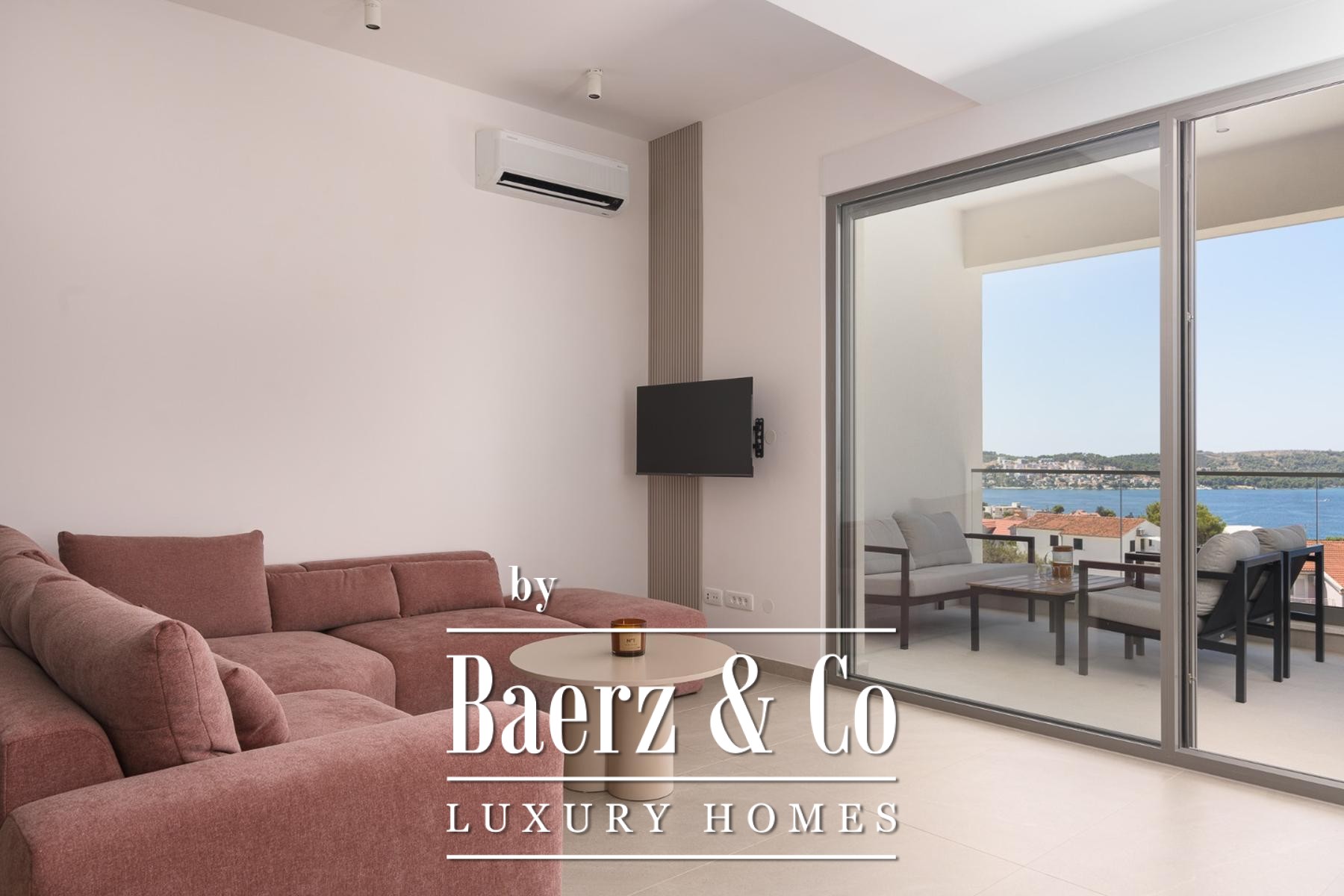 Luxury apartment Trogir commands an exceptional setting, with 132 m² of refined living space distributed across two thoughtfully designed levels. This residence offers panoramic sea views that frame every moment, with interiors shaped by top-quality materials and bespoke furnishings. The apartment features four bedrooms and four bathrooms, optimized for both privacy and gathering, with a generous open area uniting kitchen, dining, and living functions as the social heart.