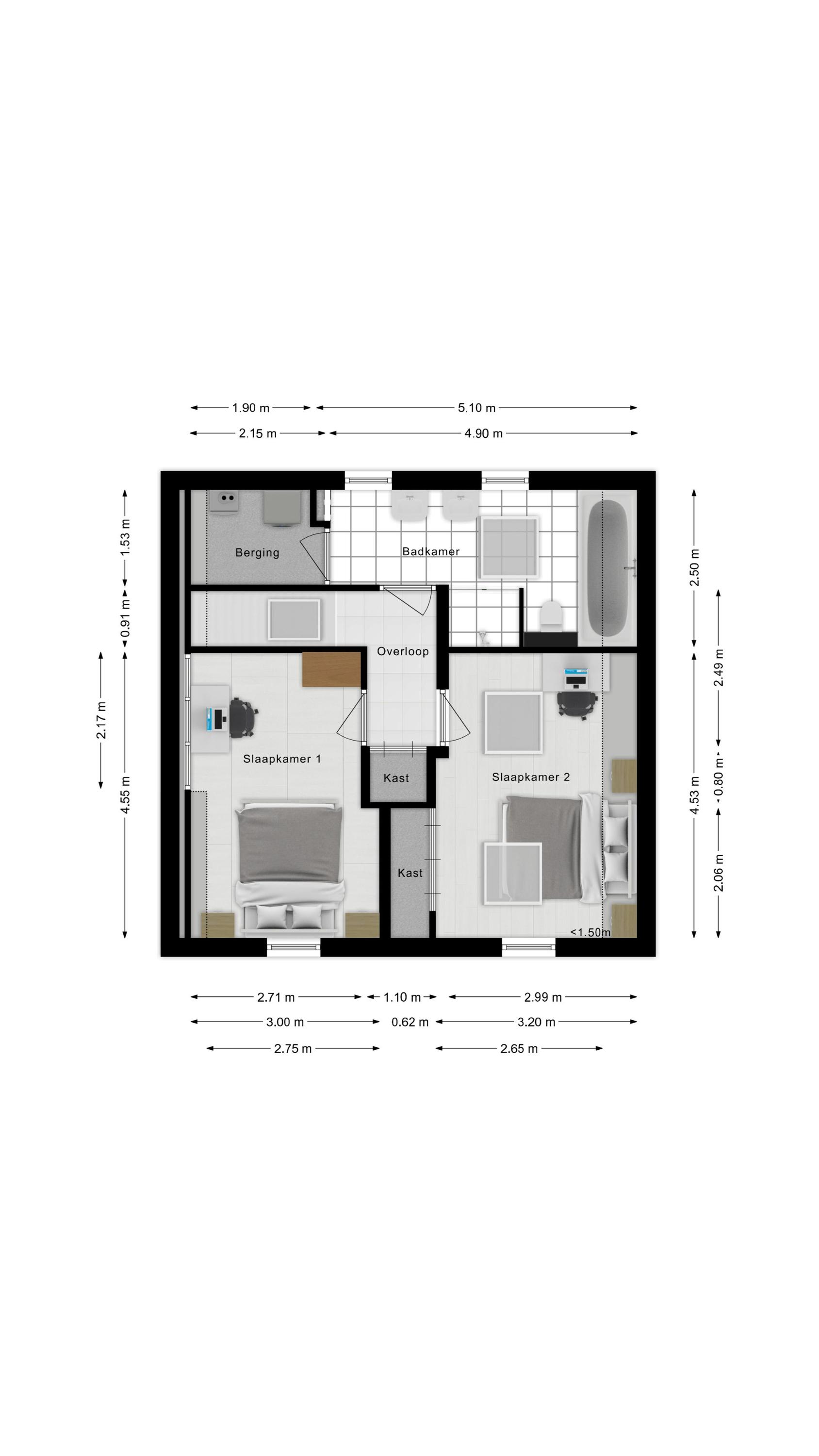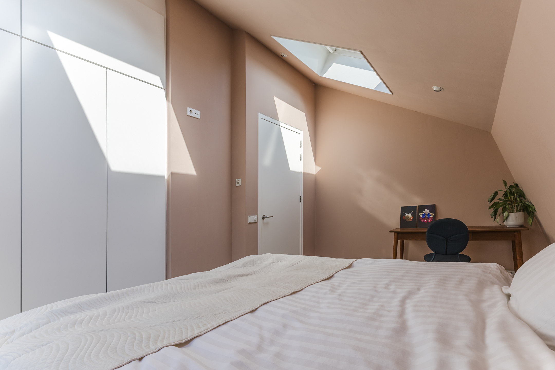 The spacious living area benefits from abundant natural light, underfloor heating, and a gas fireplace. The living room connects openly to the kitchen-diner but can be separated by elegant pivot doors. A practical cellar provides additional storage, and the unique raised room (opkamer) offers access to the first floor.