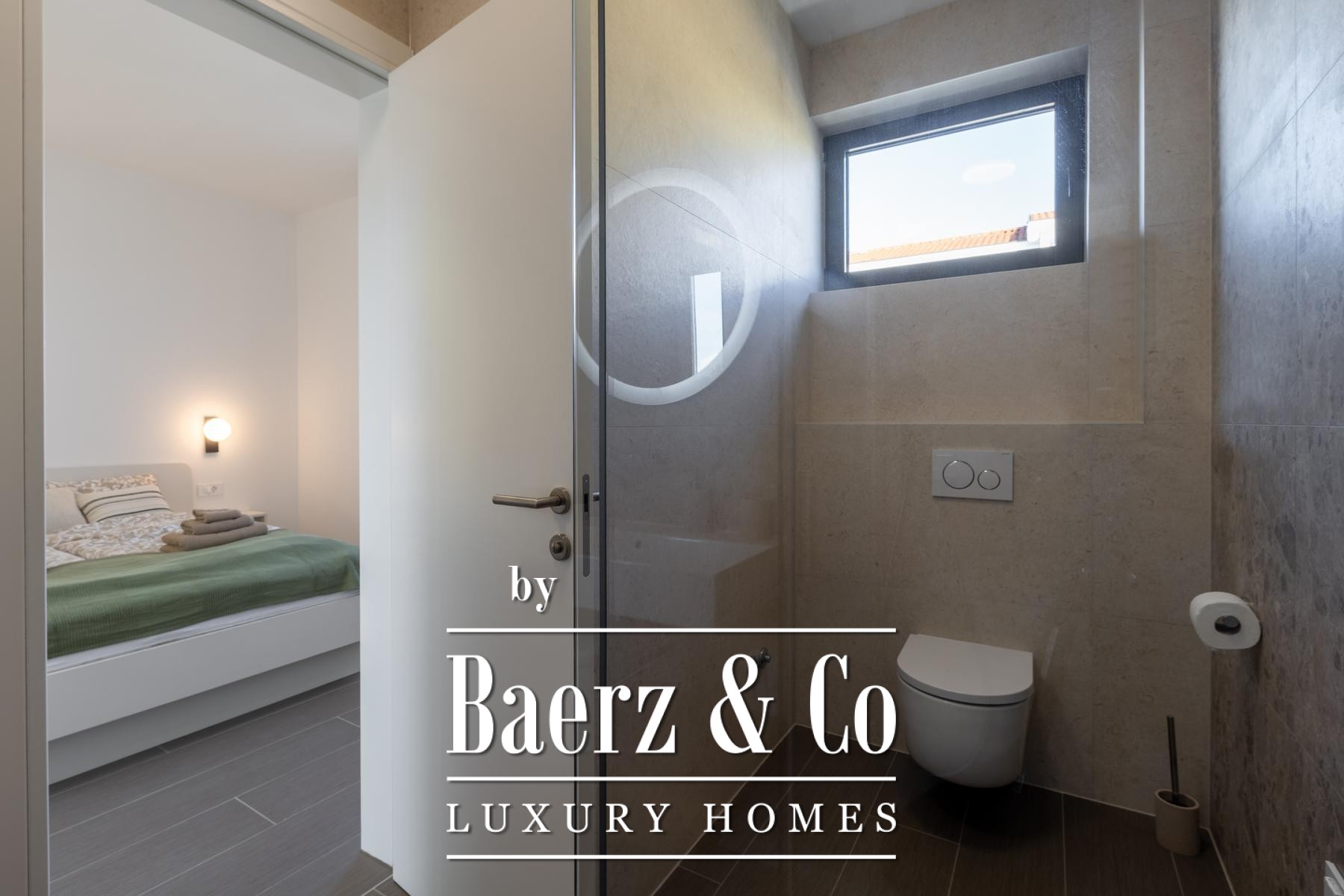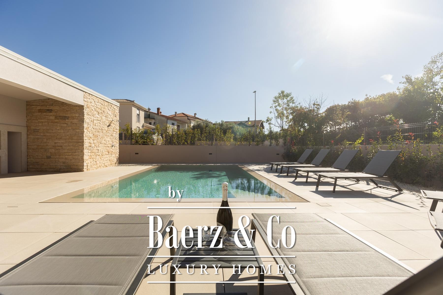 Four upstairs bedrooms each offer a private en suite, ensuring individual comfort for family members or guests. Underfloor heating via heat pump and comprehensive air conditioning in every room provide a consistently temperate environment regardless of season. This property is an impeccable example of a modern villa for sale in Umag, balancing authenticity and practicality for discerning buyers.