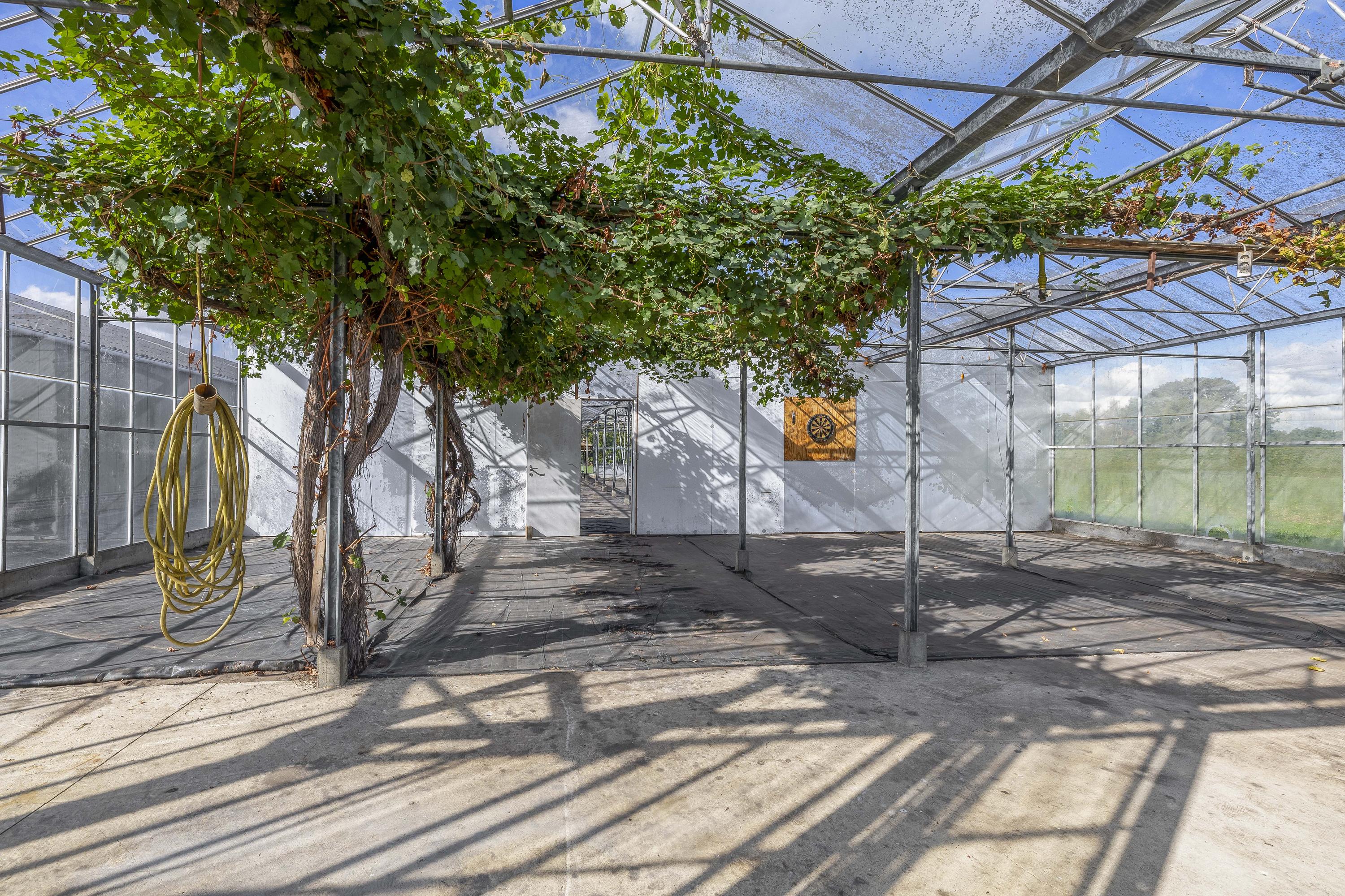 The spacious, detached horticultural greenhouse has electricity and three-phase power.