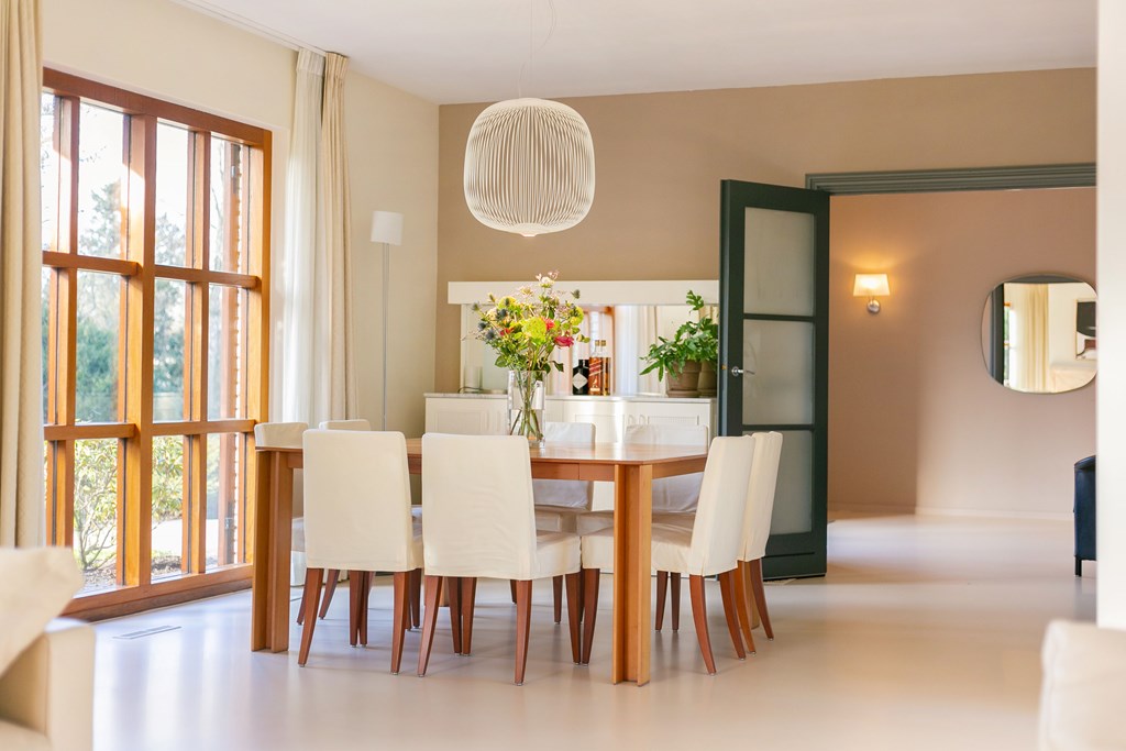 The detached villa is filled with natural light and privacy and offers 459 m² of living area, largely on the ground floor. It occupies one of the most beautiful and quiet locations in the De Salamander neighbourhood—just a two-minute walk from the Utrechtse Heuvelrug forest, yet close to all amenities in Veenendaal.