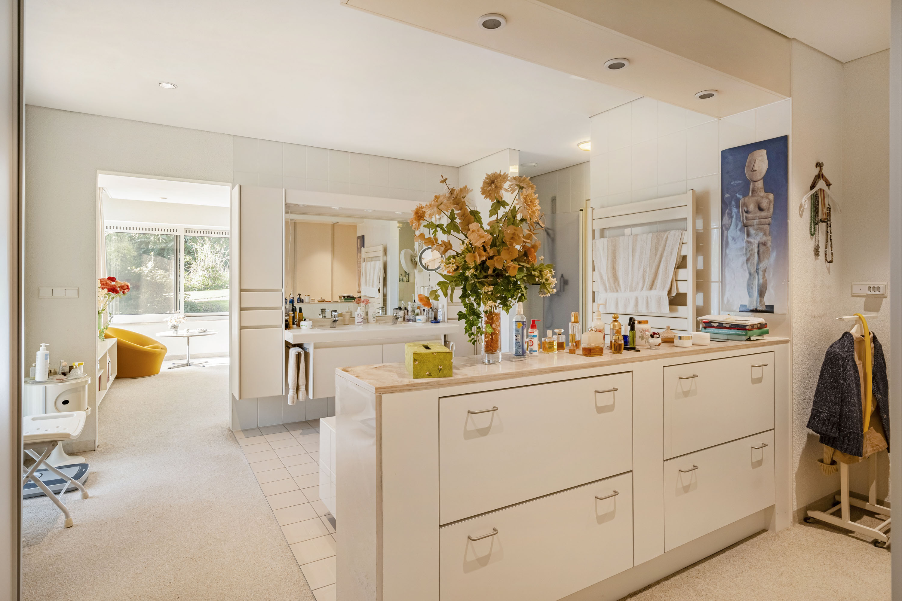 From the entrance, a spacious hallway provides access to all rooms on this floor. There are four bedrooms, two bathrooms, and an indoor swimming pool. The pool features sliding doors that open directly to the garden, allowing you to fully enjoy the natural surroundings.