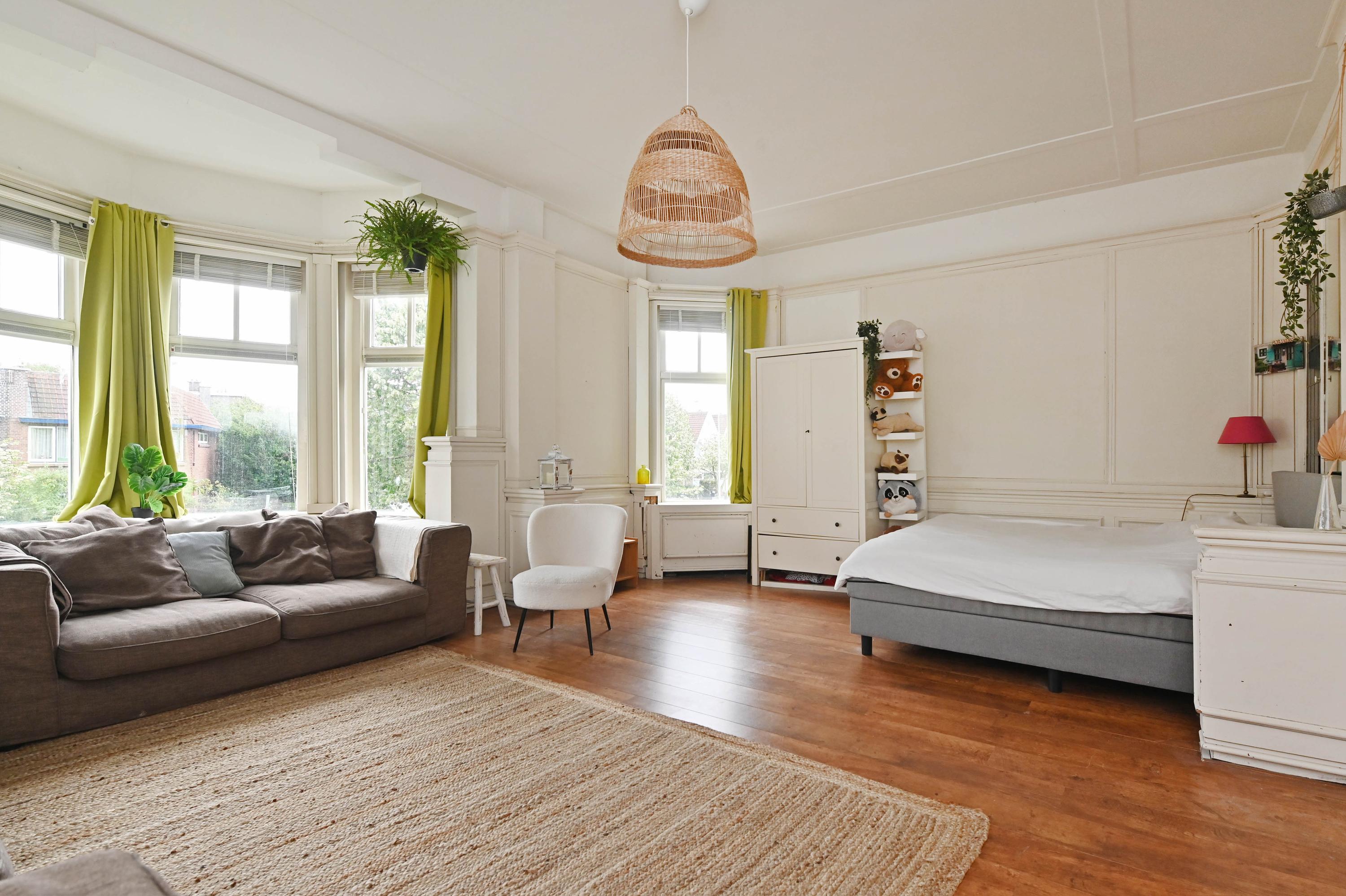 Spacious (ca. 285m2) end-of-terrace house with 7 bedrooms, 2 bathrooms, garden on 3 sides, and a driveway set on a wide, tree-lined street in historic Voorburg.