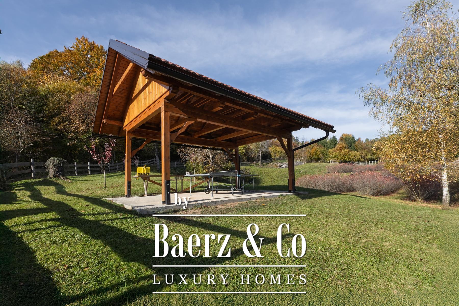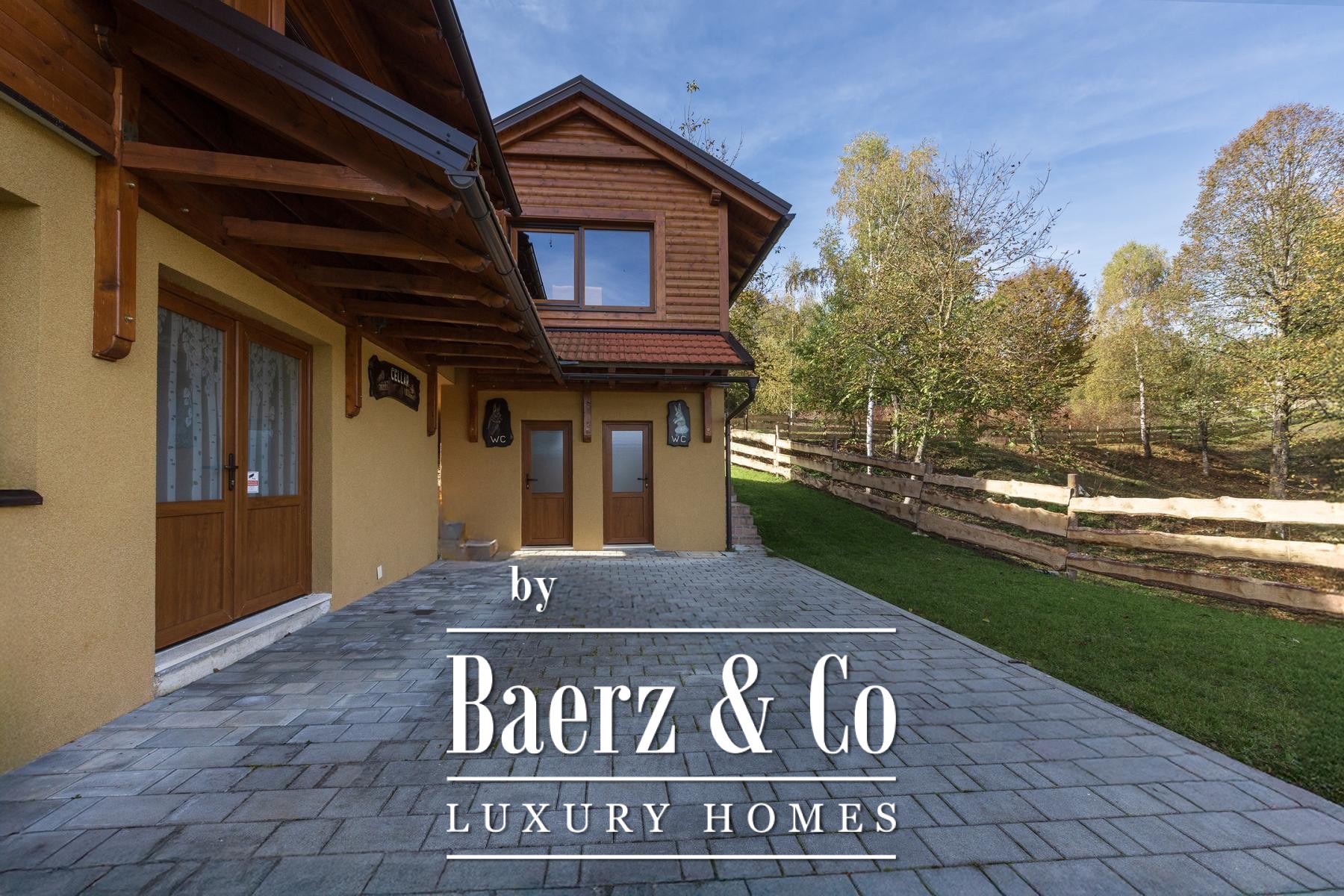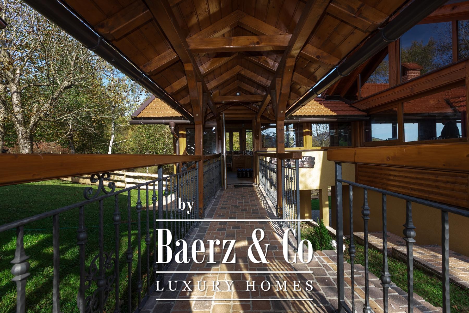 buildings are modernly furnished, legalized, and partially equipped with infrastructure (electricity, septic system, and cistern water supply). Heating on pellets.The property currently operates as a luxury countryside resort, highly rated for privacy, comfort, and expansion potential into a year-round hospitality business.Additional Property IncludedThe price also includes a former guesthouse in the center of Vrbovsko, located on a 899 m² plot, with a net usable area of approx. 127 m² spread over three floors plus a basement.Dating back to the 19th century, this building was once a well-known inn — ideal for restoration into a heritage hotel with around ten rooms.It can be strategically integrated with the main estate through a “hotel-to-estate” tourism concept, creating a comprehensive Gorski kotar experience combining accommodation, gastronomy, and recreation.Investment OpportunityThis is not an ordinary property — it is a high-value investment project.The combination of luxury rural tourism, a wellness concept, and ecological agriculture enables a fast return on investment through multiple parallel ventures:Tourist rentals and organized holiday packagesAgritourism and gourmet programsTeam-building and event programsProduction and sale of local productsDevelopment of additional accommodation facilitiesKey AdvantagesTotal land area over 60,000 m²More than 500 m² of developed facilitiesFully functional and legalizedPossibility of expansion and diversificationComplete privacy and pristine natural surroundingsAdditional property included (guesthouse in Vrbovsko center)Purpose: tourism-agriculture complex with expansion potentialFor more information, detailed land structure, and the investment plan, we remain at your disposal