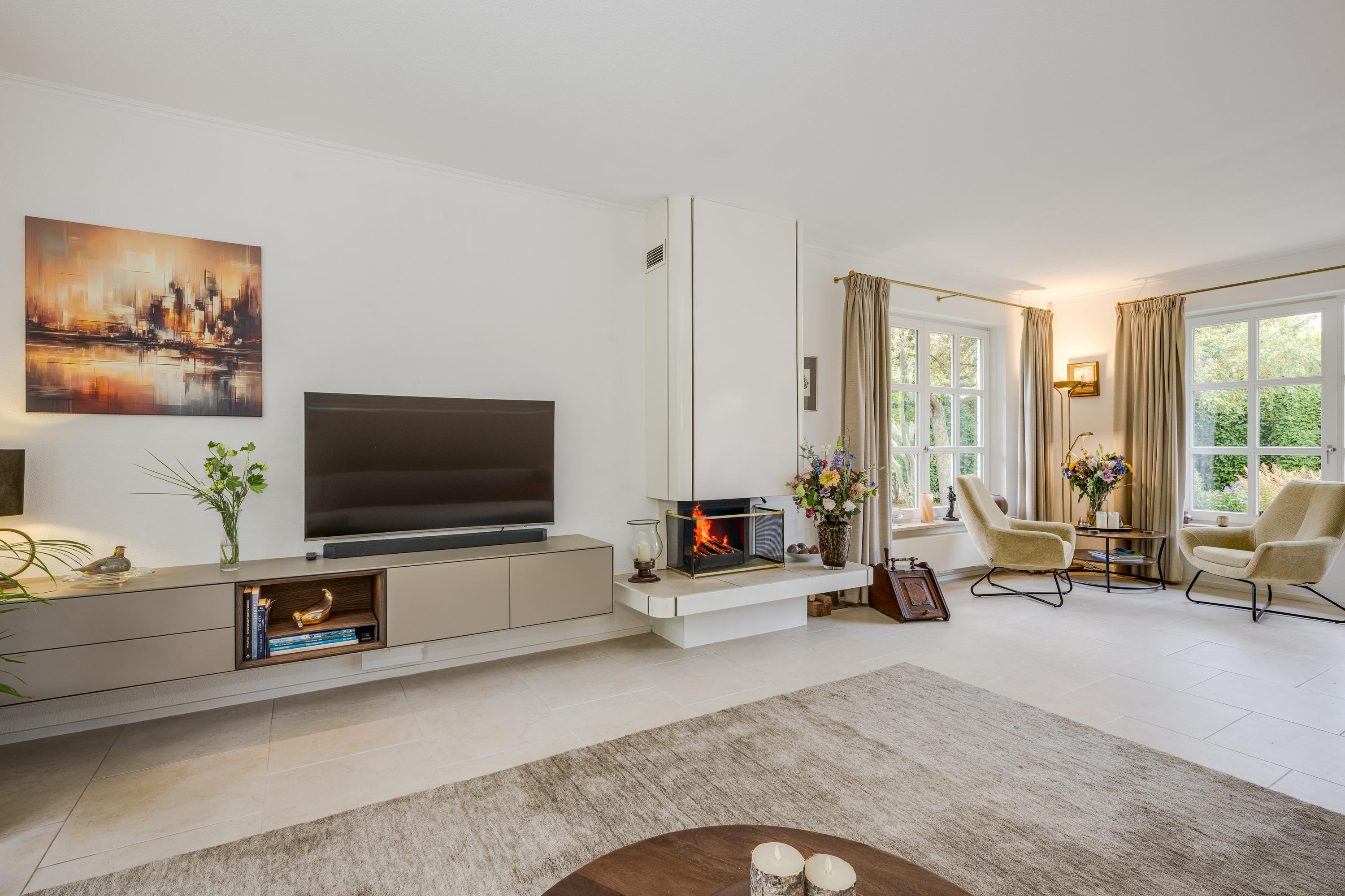 This luxurious villa stands on a spacious, sunny plot of no less than 754 m², right on the edge of the forest. Surrounding it is a beautifully landscaped, sunny garden with plenty of privacy, a wonderful place to relax with family and friends.