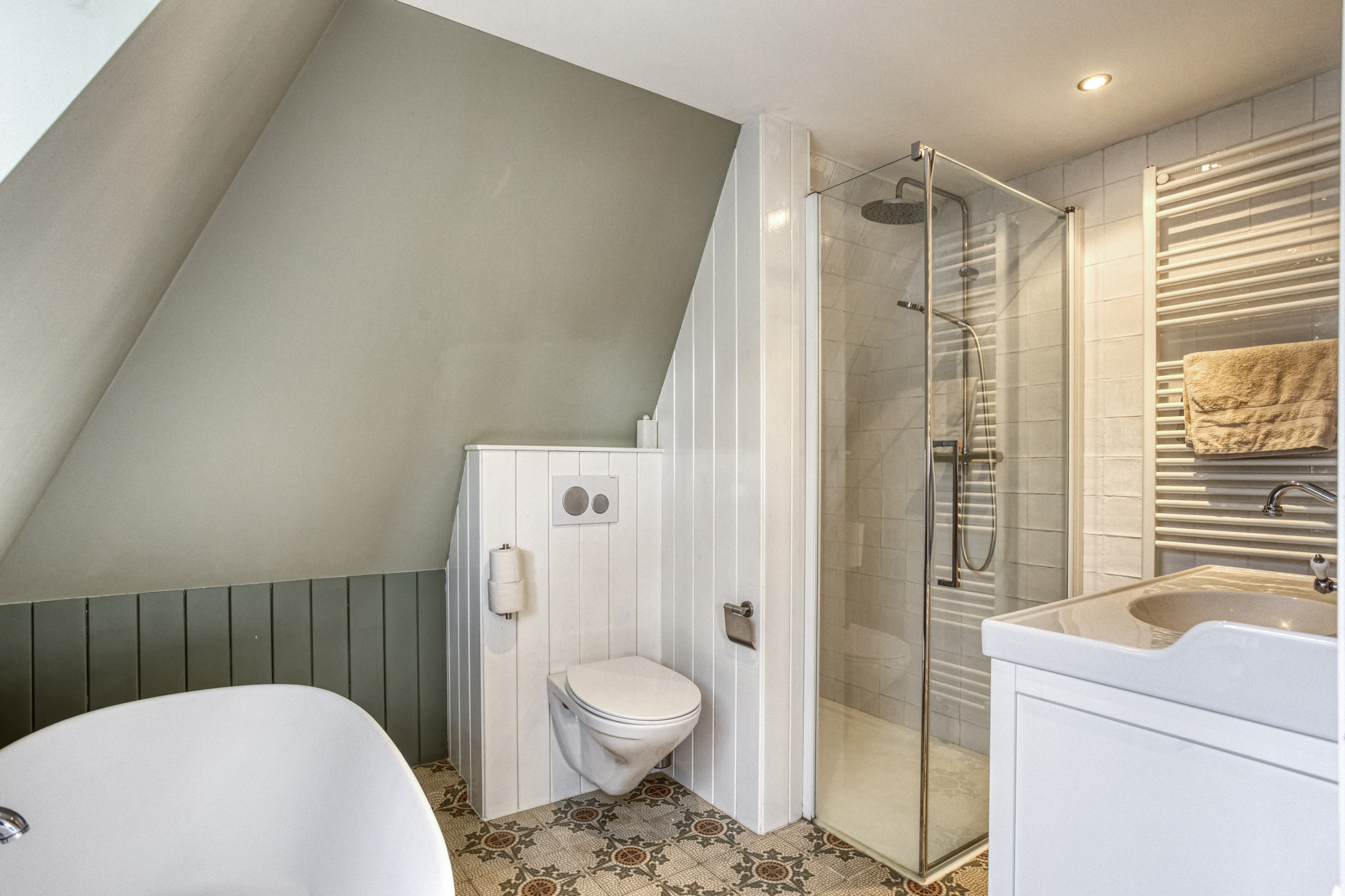 This beautiful villa has recently been almost completely renovated, modernized and insulated, whereby the original atmosphere and appearance from 1900 have been combined with the comfort and finishing of today. The living room, dining room and kitchen form the heart of the house. Here you can have breakfast, cook and dine with a large group and the fireplace is a wonderful place in the winter. The very spacious and fully walled garden offers not only privacy but also extra safety: small children can play here carefree. From spring onwards, the garden doors can be opened, so that the house and garden merge into each other.
