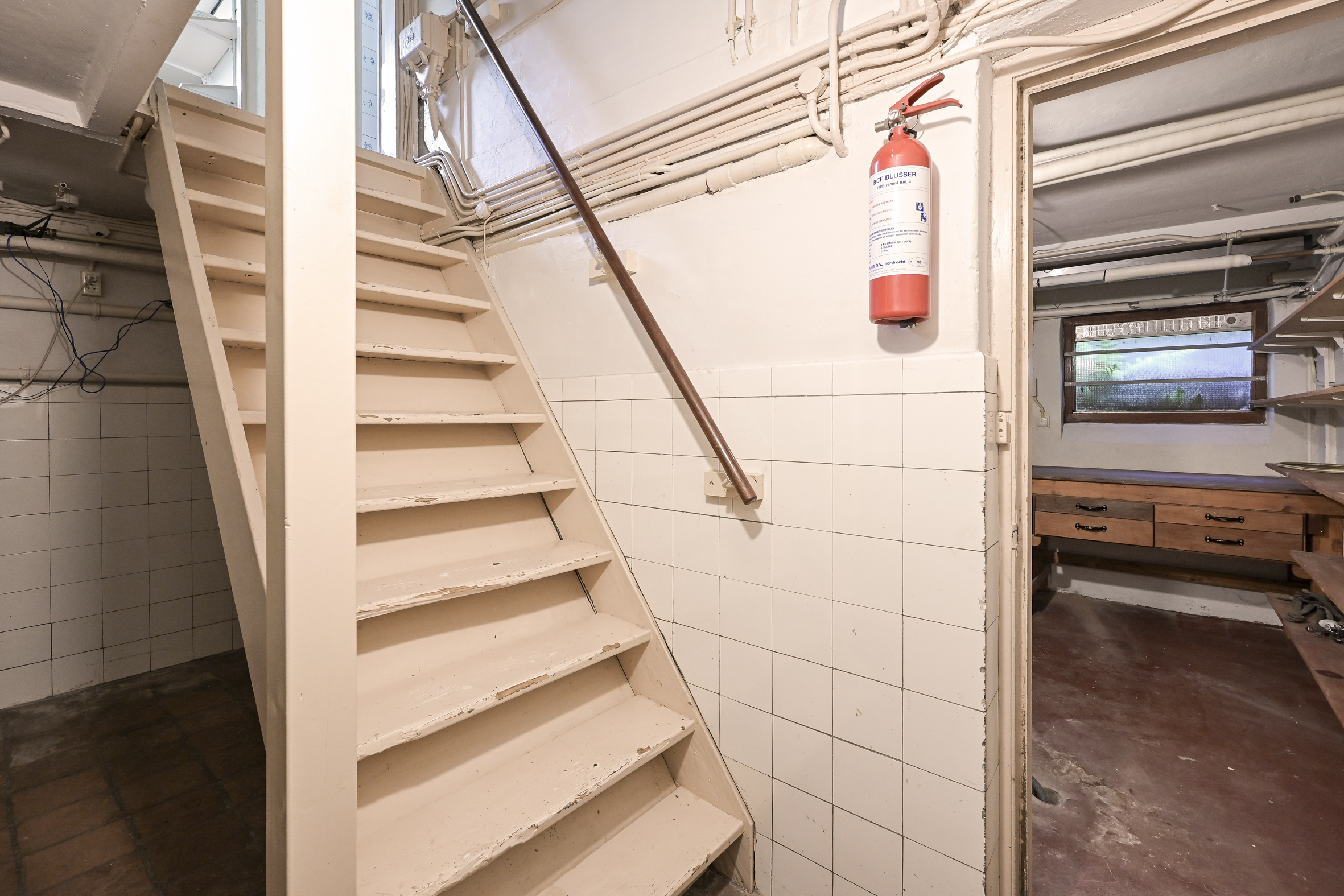 The attractive, light-filled stairwell with a landing that opens onto a balcony leads to the first floor, where you’ll find a simple bathroom, a separate shower, a beautiful study with access to a large balcony, and two spacious bedrooms. As mentioned, all rooms feature oak parquet flooring.