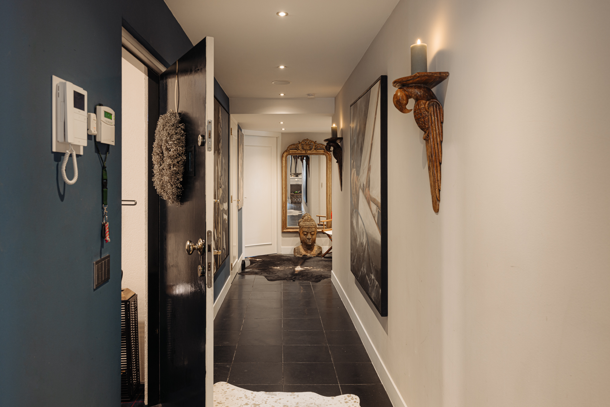 Entrance, spacious hall with luxurious stone flooring and underfloor heating, and guest toilet.